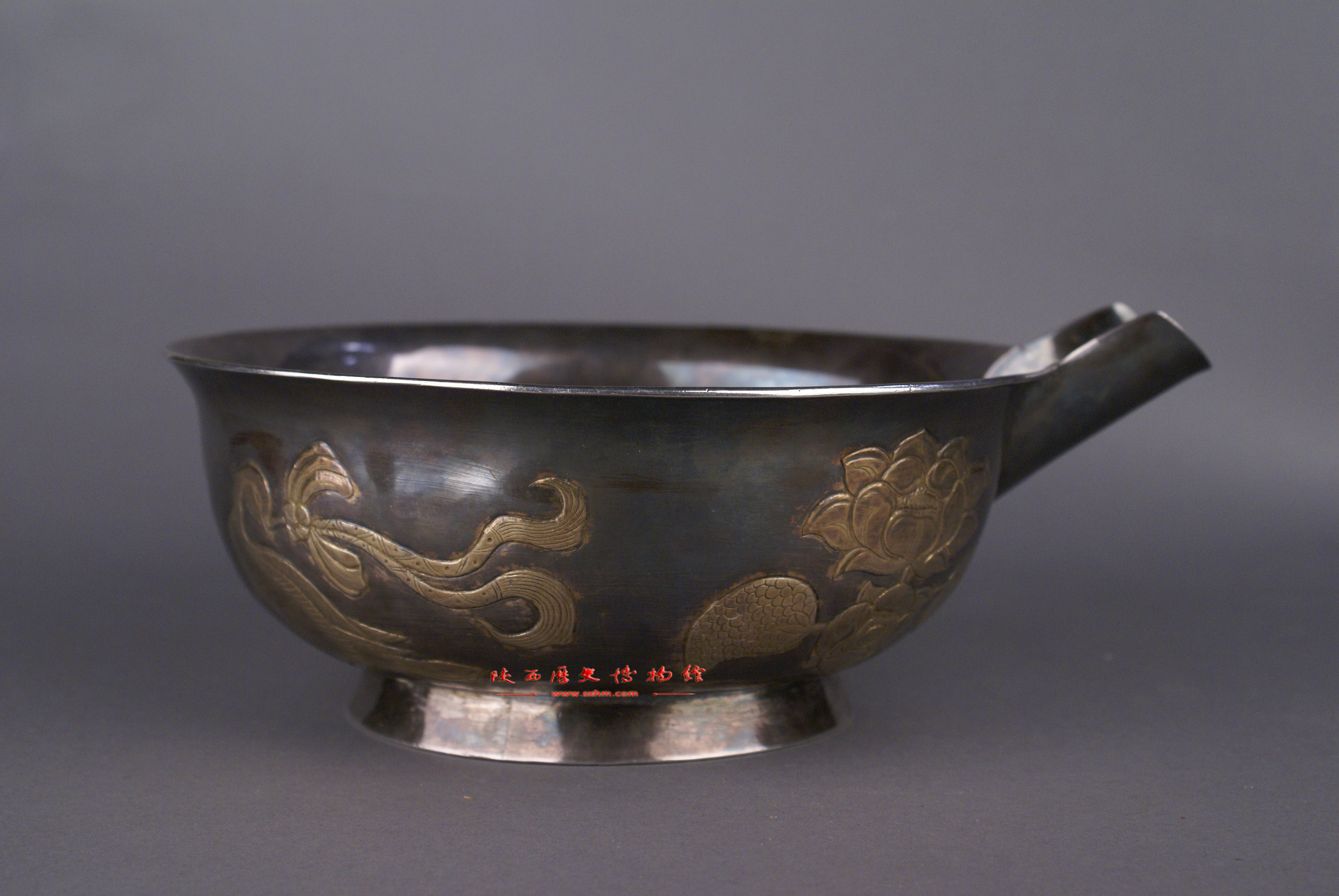 唐鎏金鸿雁折枝花纹银匜