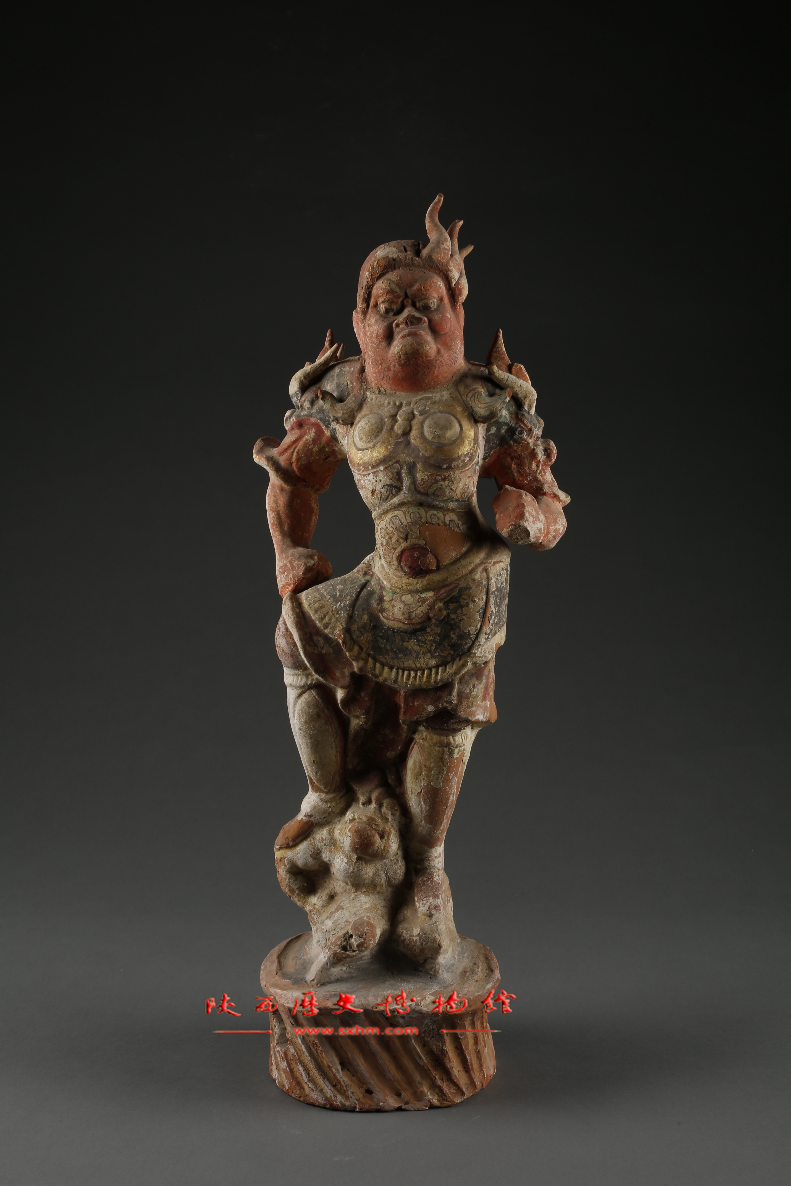 唐彩绘陶描金天王俑