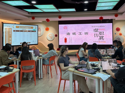 9月26日,陕西历史博物馆开展了一场别开生面的体验式文化教学活动,来自西安石油大学的19名留学生参与其中。本次“‘纸’为遇见你”主题活动在课堂呈现和展厅参观的基础上,首次将我馆独具特色的虚拟仿真体验项目面向外国留学生群体开展,将最新的博物馆教育成果应用到国际文化的传播推广中。