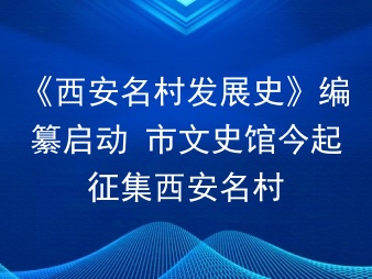 《西安名村发展史》编纂启动 市文史馆今起征集西安名村