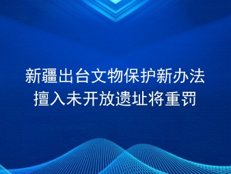 来源:新疆日报王大霖为保护未开放遗址,新疆近日出台文物保护新办法,对擅自进入未开放遗址的行为实施重罚,最高罚款可达10万元。据新疆文物保护部门介绍,近年来,部分...