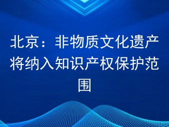北京:非物质文化遗产将纳入知识产权保护范围