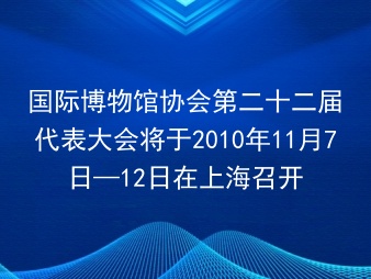 国际博物馆协会第二十二届代表大会将于2010年11月7日—12日在上海召开