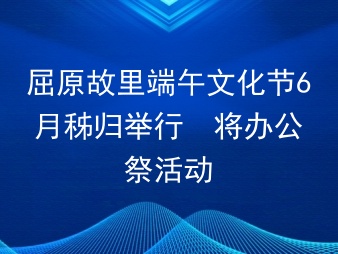 屈原故里端午文化节6月秭归举行 将办公祭活动
