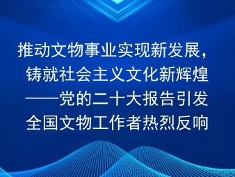 推动文物事业实现新发展,铸就社会主义文化新辉煌——党的二十大报告引发全国文物工作者热烈反响