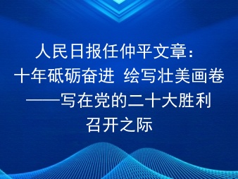 人民日报任仲平文章:十年砥砺奋进 绘写壮美画卷——写在党的二十大胜利召开之际