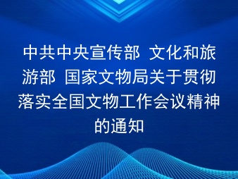 中共中央宣传部 文化和旅游部 国家文物局关于贯彻落实全国文物工作会议精神的通知