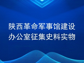 日前,陕西革命军事馆建设办公室发布革命军事史料实物征集公告,征集范围包括十大类,征集方式为无偿捐赠、复制仿制和委托代管,征集时间自公告发布之日起至2024年6月...