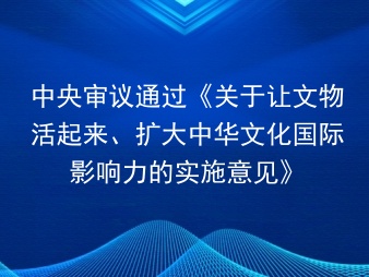 中央审议通过《关于让文物活起来、扩大中华文化国际影响力的实施意见》