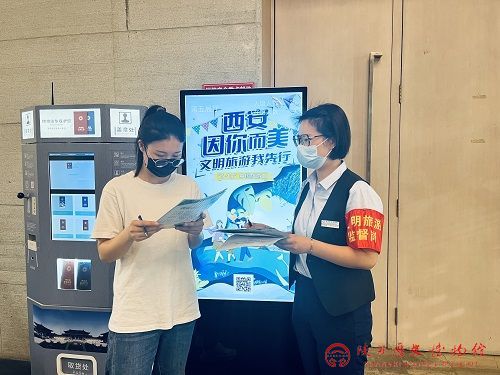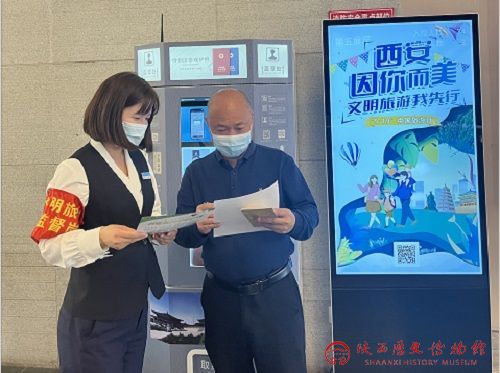 活动围绕今年旅游日“感悟中华文化 享受美好旅程”的主题,通过播放主题宣传海报、发放文明旅游宣传手册、邀请观众填写“提升陕历博参观体验感”线上问卷等方式,向公众普及了文明旅游相关知识,拉近了博物馆与公众之间的距离,同时也为博物馆提升公众参观体验感和满意度方面提供了有效的反馈意见。
