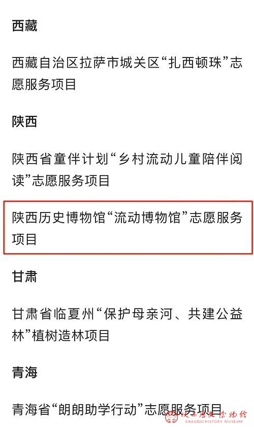 陕历博“流动博物馆”志愿服务项目荣获全国学雷锋志愿服务“四个100”先进典型荣誉——“最佳志愿服务项目”不仅是对陕历博志愿服务工作的肯定和奖励,更是鼓励和鞭策!陕历博志愿服务工作将不断探索创新,再创辉煌。陕历博志愿者将常怀感恩之心,做雷锋精神的传承人,在学雷锋志愿服务的道路上继续前行,不断进步。(投稿部门:社会教育部;撰稿人:刘娟;审核人:廉钰)