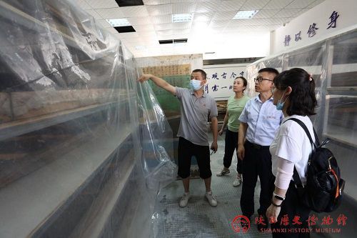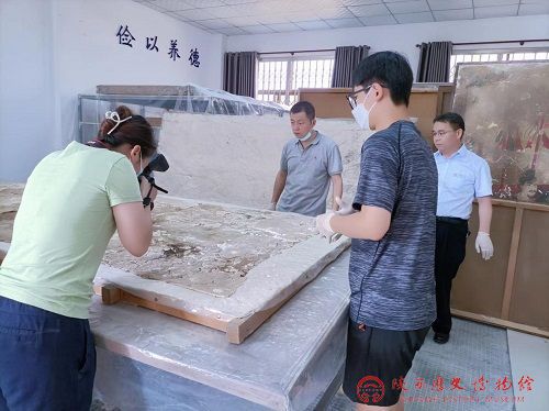 为更好发挥“陕西壁画保护修复研究基地”职能,加强省内文博单位壁画文物保护技术交流与合作,7月26日至27日,陕西历史博物馆保护修复部壁画保护科科长高小超及业务人员一行四人,前往乾陵博物馆,进行懿德太子墓壁画保护修复方案的前期调查工作。