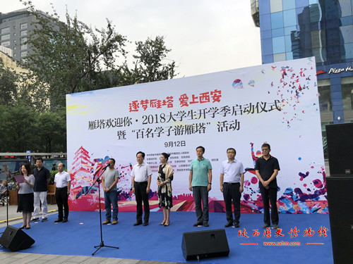 2018年9月12日上午,“雁塔欢迎你•2018大学生开学季”启动仪式暨“百名学子游雁塔”活动在赛格国际购物中心西门广场举行。来自陕西师范大学、西安音乐学院、西安美术学院、西安欧亚学院四所高校的百余名学生代表参加此次活动。中共雁塔区委书记赵小林、雁塔区委常委、组织部部长李连永、雁塔区人民政府副区长李亚省出席活动,我馆纪委书记朱铭应邀参加。参加启动仪式的还有区委办、区政府办、区旅游局、区团委等各部门主要负责同志。