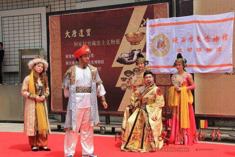 在精美的文物展板前,游客朋友们纷纷驻足,认真聆听讲解员生动地讲解,并不时的提问。宣讲结束后,很多游客还在展板留言墙上留下了参与活动的感受及对陕博“流动博物馆”的美好祝愿。除了文物展板宣讲,宣教部的工作人员还策划了精彩的文艺演出节目。文艺演出环节由歌舞《贞观长歌》、诗歌朗诵《第一次走近你》及舞台历史小话剧《五难求婚记》等节目组成,期间穿插的数次问卷调查抽奖互动环节将现场气氛推向高潮。工作人员准备了陕博“流动博物馆”明信片及精美的logo徽标作为奖品发放给幸运观众,满足的笑容洋溢在每一位观众脸上,现场气氛非常热烈。