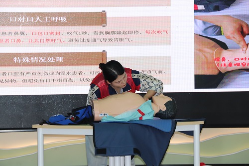 分享会上,志愿者曲浩还原了救援全过程,从听到呼救后的反应,到判断险情、细心安抚,每一个细节都展现出对生命的敬畏与专业的严谨。随后,志愿者朱倩文以“气道急救双技:海姆立克与心肺复苏”为主题,结合案例进行讲解,并通过模拟道具演示了不同人群的施救方法,补充了博物馆常见突发情况的应对流程。公众服务部工作人员门美则围绕沟通技巧,结合服务场景,强调专业沟通在服务游客中的重要性。