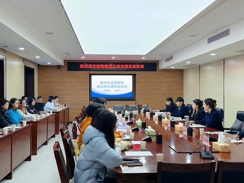 11月29日上午,陕西历史博物馆组织开展“志愿同行·研以致用”观众研究调查员专题培训。来自西安电子科技大学、西安外国语大学的大学生志愿者代表及公众服务部相关工作人员近40人参会。培训由公众服务部主任李博雅主持,公众服务部观众研究负责人田苗、刘宇鹤主讲。