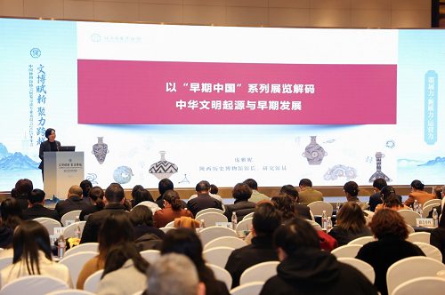 我馆党委书记、馆长庞雅妮应邀作题为《以“早期中国”系列展览解码中华文明起源与早期发展》的主旨发言。她介绍到,为生动展现中华文明探源工程的丰硕成果,陕西历史博物馆以彩陶、玉器、冶金为三大视角,精心策划“早期中国”系列展览,系统阐释中华文明起源与早期发展的壮阔历程。该系列由“彩陶?中华”、“玉韫?九州”和“吉金·中国”三期大展构成,完整呈现了从古国时代到王朝文明多元一体演进脉络,深刻诠释了以“尊王”、“崇礼”、“内华夏”为核心的政治一统、文化一统与民族一统。她从展览策划、展示手法与传播策略三个层面,深入解读了“早期中国”系列展览的成功实践。发言内容引起与会者的广泛关注与积极反响。
