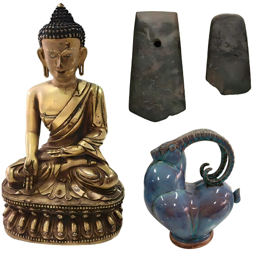 活动当天共有5位民间收藏爱好者前来,鉴定藏品共12件组,藏品包括陶瓷器、玉石器、金属器等。其中一位藏家携带了家中收藏多年的三件瓷器,并根据自学判断这些瓷器可能为元代钧窑、哥窑瓷器,希望得到专家的肯定。郑老师经过仔细辨认后,向藏家告知,三件瓷器均为当代艺术品,并向藏家解释道,三件瓷器的造型与窑口不符、釉层有酸蚀杀光处理、表面土层虚浮等特点,同时郑老师还向藏家普及了元代哥窑、钧窑瓷器的器型特征。