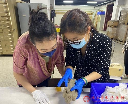 本次展览的借展工作从2月底即开始磋商,从前期参展文物的挑选、藏品保存状况的评估,到后期藏品出库点交的开展,以及布展工作的实施,皆遵循细致谨慎的原则,按照相关程序步步推进。同时为了保障文物安全和展览工作的顺利进行,陕历博派出布展小组协助完成了文物布展工作。