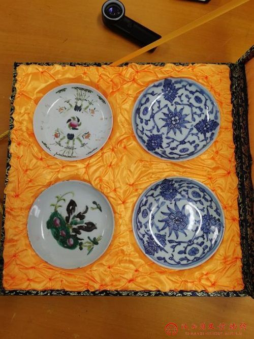 活动中有位藏家拿着一个神秘锦盒前来鉴定,据这位藏家介绍,盒内放有4件瓷盘,是半年前在整理家务时不经意发现的,听说是家里老人很久以前就买的,从外观看像是很早的东西,但不确定,正好看到陕西历史博物馆公益鉴定的公告,便报名参加,想让专家老师们看看这些东西是不是真的,如果是真的就打算给后代们传下去。经过仔细观察后,尹夏清教授从该瓷器器形、釉色及花纹属性等方面为藏家做了全面的解释,并认定该4件藏品都为真品,其中2件青花瓷盘的年代不晚于清末,2件彩釉瓷盘年代为民国时期。