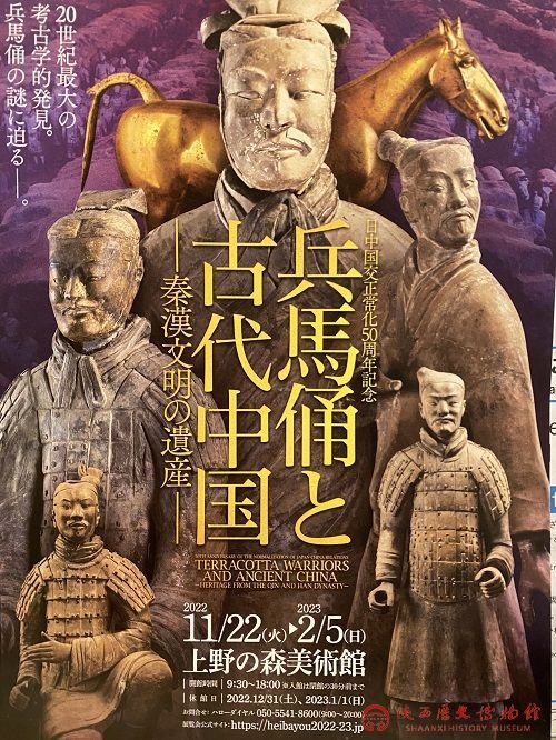 11月22日,“兵马俑与古代中国—秦汉文明的遗产”展览在日本东京的上野森美术馆开幕。本次展览是为庆祝中日邦交正常化50周年,应日本中日新闻社(东京新闻)的邀请,经国家文物局批准,由陕西省文物局主办,陕西历史博物馆(陕西省文物交流中心)、秦始皇帝陵博物院与日本中日新闻社东京本社(东京新闻)共同承办。