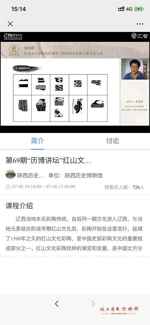 7月6日,科研规划部举办第69期“历博讲坛”。本次讲坛邀请辽宁大学历史学院教授,博士生导师张星德以《红山文化彩陶纹样视角下的中国北方新石器文化互动》为题作专题讲座,副馆长庞雅妮主持。本期讲座是配套陕西历史博物馆主办的“彩陶中华,中国五千年前的融合与统一”大型特展系列讲座的第19讲,线上讲座浏览人数2391人次,实际944人次参与在线直播听课。