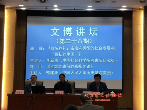 2月25日,由陕西省文物局主办、陕西历史博物馆承办的大型公益文化讲座“文博讲坛”第28期在陕西历史博物馆开讲。本次讲座也是我馆“彩陶与早期中国系列讲座”计划的一部分。中国社会科学院考古研究所研究员李新伟、中国人民大学教授韩建业分别做了题为《西坡葬礼:庙底沟类型的社会发展和“最初的中国”》《丝绸之路前的彩陶之路》的讲座。讲座由陕西省文物局副局长罗文利主持,陕西历史博物馆副馆长王炜林出席,陕西文物系统多个单位业务人员以及大专院校师生、社会人士300余人聆听了讲座。