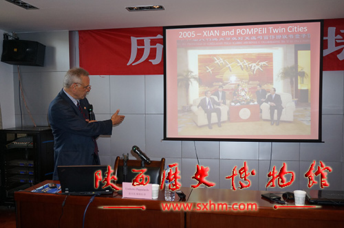 2016年7月13日上午,《历博讲坛》特邀两位意大利专家Umberto Pappalardo (翁贝托·帕帕拉多)以及Stefano Vanacore(斯特法诺·瓦纳科雷)就庞贝古城的保护研究等内容,为陕西历史博物馆业务人员、文博界同行以及高校师生50余人做了报告。陕西省壁画保护修复研究基地副主任晏新志主持讲座。