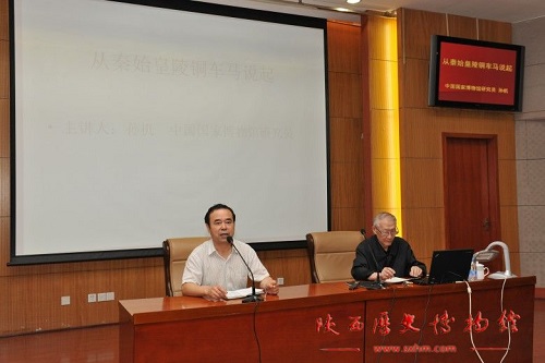 6月25日、26日,由陕西省文物局主办,我馆承办的大型文博系列学术讲座《文博讲坛》在宣教部多功能厅举行。我馆特邀著名文物研究专家,中国国家博物馆研究员孙机先生进行了《当前文物研究中的一些问题》和《从秦始皇陵铜车马说起》两场讲座。省文物局副局长郭宪曾,馆长成建正分别主持了此次系列讲座,省文物局巡视员刘云辉,馆党委书记罗文利等同来自陕西文物系统的同仁和西安高校师生、文物爱好者一起聆听了讲座。