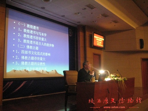 2012年3月16日上午,《文博讲坛》第一讲在我馆多功能厅举行,成建正馆长主持了此次讲坛,省文物局副局长刘云辉研究员到会并讲话,裴建平副馆长对讲座做了总结。局机关、碑林博物馆等单位以及陕西师范大学、西北大学等大专院校的相关学者、我馆员工聆听了此次讲坛。本次讲坛特邀国家图书馆善本部著名敦煌学研究专家、著名佛教古籍研究专家、国家古籍保护专家委员会成员方广錩教授前来主讲“敦煌遗书与佛教典籍的定级标准”。 方教授曾就职于中国社科院亚洲太平洋研究所、中国社科院世界宗教研究所。现从事佛教、敦煌学研究,有专著20余部,论文200余篇。主要代表作有:《佛教志》、《中国写本大藏经研究》、《敦煌学佛教学论丛》、《敦煌遗书散论》等。
