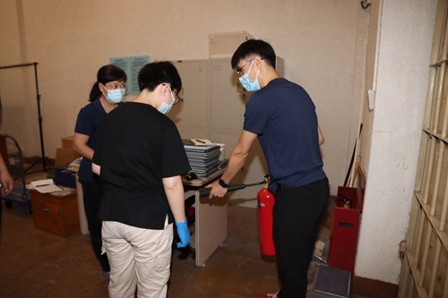 此次安全隐患排查起底梳理工作,是馆党委紧密结合新修订的《安全生产法》宣贯和博物馆领域特点、实际,筑牢安全防线,保障文物保护利用改革落实的具体举措。检查按照“部门自查与全馆大排查相结合”,坚决落实“三个必须(管行业必须管安全、管业务必须管安全、管生产必须管安全、管经营必须管安全)”“和谁主管谁负责”的原则。排查重点对文物藏品库、建筑屋顶下水管道应对极限排水承载度、房屋平顶防水性能、馆区易积水、低洼地段雨水排泄、防倒灌措施是否符合规范要求,办公、储藏区域是否采取有效的防火隔离,单位消防安全疏散通道、安全出口是否畅通,用电、烘干、动火、用气以及易燃化学品、危险品是否实行严格管理,消防器材是否保持完好有效等情况进行了排查,同时现场对相关人员灭火器材的操作与使用以及扑救初期火灾技能进行了培训指导。