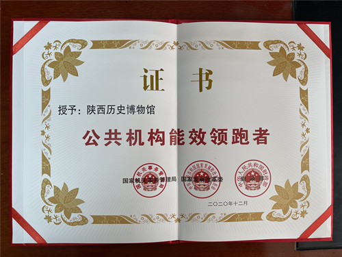 2021年8月2日,陕西省机关服务中心节能处代表国家机关事务管理局、国家发展改革委、财政部,为陕西历史博物馆颁发了“公共机构能效领跑者”奖牌和证书。