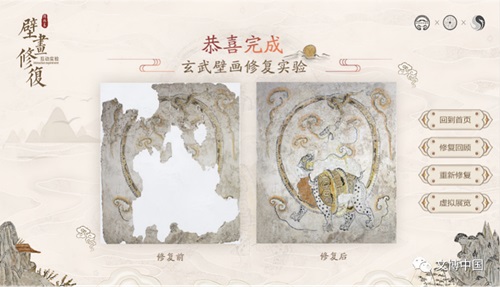 “妙手回春——韩休墓壁画玄武图修复虚拟展”壁画修复操作界面