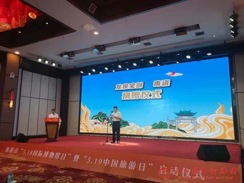 5月18日上午,在衡阳市“5.18国际博物馆日”暨“5.19中国旅游日启动仪式上,由陕西历史博物馆、衡阳文旅广体局、龙泉市人民政府主办,龙泉市人力资源和社会保障局、衡阳市博物馆承办的“天下龙泉——中国龙泉青瓷·宝剑传承与创新展”的推介,作为活动的重点内容。活动中,陕西历史博物馆陈列展览部副主任姜涛对该展览作了介绍,衡阳市人民政府龚学余副市长、衡阳市文旅广体局王郦君等领导为向衡阳市博物馆捐赠作品的12位浙江龙泉青瓷及宝剑工艺大师颁发了捐赠证书。