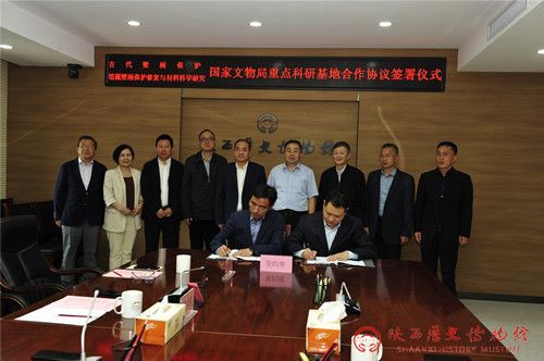 2021年5月8日上午,古代壁画保护国家文物局重点科研基地(依托单位:敦煌研究院)与馆藏壁画保护修复与材料科学研究国家文物局重点科研基地(依托单位:陕西历史博物馆、西北工业大学)在陕西历史博物馆签订了框架合作协议,签约仪式由陕西历史博物馆副馆长庞雅妮主持。陕西省文物局副局长贾强、敦煌研究院副院长苏伯民,陕西历史博物馆党委书记、馆长侯宁彬及陕西省文物局、敦煌研究院、陕西历史博物馆、西北工业大学相关部门负责人出席仪式。两家重点科研基地主任路智勇和赵林毅代表双方签署了框架合作协议。