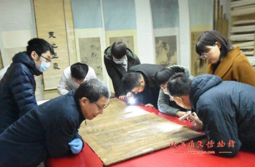 2月4日,陕西历史博物馆邀请陕西省文物保护研究院文物鉴定研究部主任杜文一行七人,对保护修复部承担的商洛市商州区博物馆馆藏书画文物修复项目所涉文物进行鉴定定级。