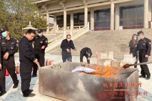 为全面落实省文物局《关于开展全省文物系统消防安全宣传月活动的通知》要求,切实加强单位消防安全管理,普及消防安全知识,进一步提升全馆职工的消防安全意识和消防应急处置能力,形成“关注消防、生命至上”的良好氛围,在全国第29个“119”消防日暨全民消防宣传月来临之际,我馆结合实际,分别于11月6日、9日开展消防安全宣传月系列活动之有奖知识答题和消防综合演练。陕西省文物局二级巡视员齐高泉、督察与安全处处长周党卫、西安市公安局雁塔分局旅游警察大队相关人员、雁塔西路消防救援站消防人员及全馆职工参加本次活动。