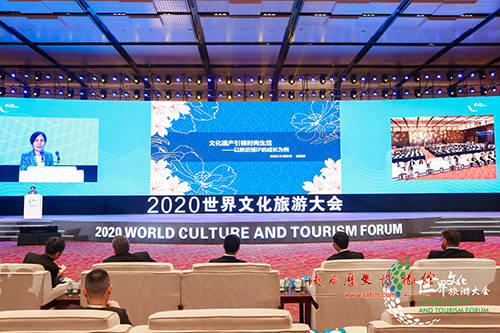 2020世界文化旅游大会围绕“文旅复苏 创新转型”的主题,会议邀请来自世界旅游城市联合会、上合组织秘书处、外国驻华使领馆、世界旅游组织、世界旅游联盟等国际组织代表和国内外旅游企业、旅游营销机构、各地市文旅部门代表等500余人参加了开幕式,共同探讨疫情常态化下文旅产业的复苏与振兴。庞雅妮作了题为《文化遗产引领时尚生活》的主旨演讲,与大家分享了陕西历史博物馆通过打造博物馆IP ,运用创意和科技手段对古老文化进行现代转化、借用市场要素让文化从“殿堂”到“日常”进行产品转化的文旅融合发展思路和探索性尝试,得到了与会嘉宾的积极反应。