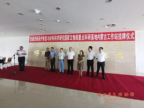 8月26日,“馆藏壁画保护修复与材料科学研究国家文物局重点科研基地”内蒙古工作站揭牌仪式在内蒙古博物院举行,陕西省文物局、内蒙古自治区文物局、陕西历史博物馆、内蒙古博物院、内蒙古自治区文物考古研究所的领导、专家及工作人员参加了揭牌仪式,揭牌仪式由内蒙古自治区文物局博物馆与社会文物处处长候俊主持。