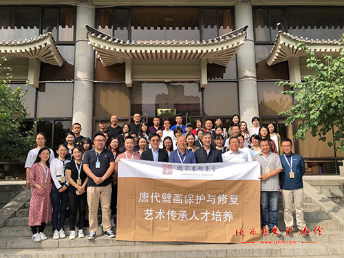 该培训班是国家艺术基金“唐代壁画保护与修复艺术传承人才培养”项目的主要活动之一,由中国美术学院主办,中国美术学院岩彩画研究所承办,河北美术学院、陕西历史博物馆协办,具体事务由壁画基地办公室落实,学院来自全国各地美术院校的青年教师。今后,陕历博将继续加强同“十大美院”的合作,开创更多更新颖的合作模式,在壁画修复、研究及人才交流培训方面取得成绩。