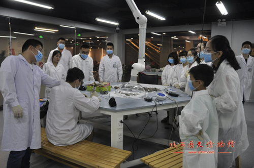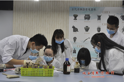 陕西历史博物馆文物修复季特展之——“冶石为器”金属文物修复开展至今已近3月,本次展览主要向公众展示青铜器的现状调查分析、科学检测及保护修复等内容。为了让公众能够近距离了解文物修复工作,我馆于6月22日在陕西历史博物馆西厅地下展厅举办了以青铜器修复为主题的公众体验活动。