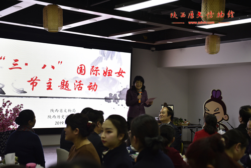 单红同志代表省妇联向全馆女职工致以节日的问候,对女同胞为我省经济、社会发展做出的贡献表示崇高的经验,对我馆在我省的经济、文化发展做出的贡献表示感谢,同时也希望广大妇女工作者能够继续发挥勤恳创业的美得在平凡的岗位上创造出不平凡的的业绩。贾强同志肯定了女职工在我馆乃至我省文化事业中扮演着重要的角色,同时也强调女性职工承担着比男性更多的家庭责任,博物馆事业的发展与“半边天”的贡献密不可分,希望各单位妇女组织能够更好的履行职责,做好单位与妇女职工的联系人。