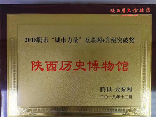 12月20日,由浐灞管委会、腾讯众创空间、腾讯大秦网、西腾产业联合举办的“城市力量 创响中国”——2018腾讯城市力量影响力盛典在西安隆重举行。此次峰会颁布了“十大影响力事件”“年度文博影响力人物”“十大城市名片”“政务传播创新奖”“城市发展推动奖”“区域典范项目奖”“年度医疗影响力人物”“百姓健康服务奖”“腾讯内容生态贡献奖”“城市双创之星奖”等11大奖项。我馆获得“互联网+升级突破奖”奖项。