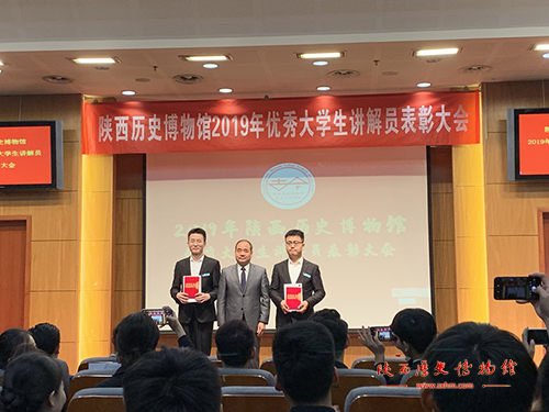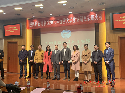 在表彰大会上,陕西历史博物馆党委书记、馆长侯宁彬向长期以来支持陕历博大学生讲解队发展的各位高校领导表达了敬意,向大学生讲解员一年的辛勤工作表达了感谢,并表示陕西历史博物馆大学生讲解实践工作即是充分利用陕西省教育资源、结合陕西历史博物馆特色的一种创新工作模式,也为大学生社会实践提供了一个全新平台。大学生讲解员为陕西历史博物馆的宣教工作做出了杰出贡献。同时希望今后更多的大学生能够走进陕西历史博物馆,成为宣传陕西文物、中国文化的一员。