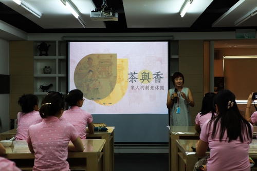 在短短一周内,大家们感受到了台湾不同的人文景致。整个行程中,尤以在台北故宫的参观活动最为精彩。当天下午,中华东方香学研究会前理事长,香道老师李孔昭特別为大家开展了“茶与香,宋人的精致生活”主题活动。首先,李老师用PPT的形式介绍了台北故宫馆藏文物中出现的茶与香的典故,然后开始教大家DIY做手工檀香饼。做完香饼,还有专门负责茶席的老师准备了可口的各式茶点和宋代点茶及冻顶乌龙请大家品茶。大家听着悠扬的古乐,品着茶点,享受传统文化带来的身心愉悦。活动结束后,大家在回程途中畅所欲言,热烈探讨两岸博物馆的联系与差异。7月14日下午,陕博之友一行安全抵达西安,结束了七天美妙的台湾之旅。