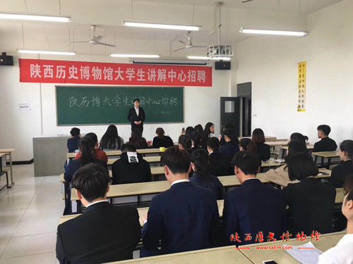 为全面贯彻落实习近平总书记“一个博物馆就是一所大学校”,关于弘扬中华优秀传统文化的重要讲话精神,为了切实发挥陕西历史博物馆爱国主义教育基地的作用,稳步推进优秀历史文化的传承和传播,2018年3月陕西历史博物馆宣传教育部开始了新一届大学生讲解员的招募工作,从招募到考核,历时近四个月,圆满完成了新招募大学生讲解员的招募、培训、考核工作。