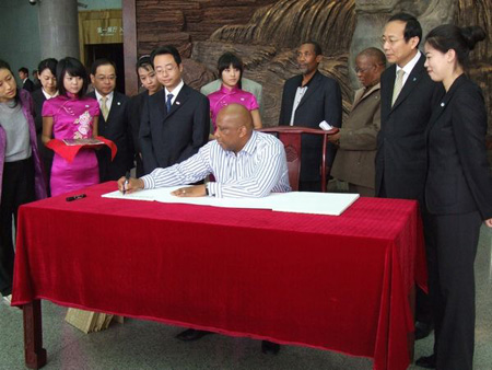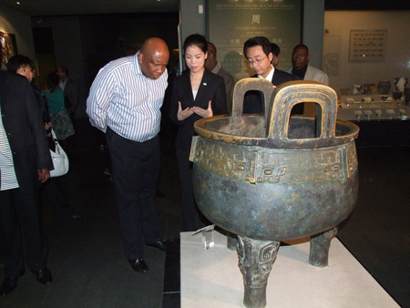 2010年10月6日上午9:00,莱索托国王莱齐耶三世等18人兴致勃勃的参观了我馆。裴建平副馆长热情接待,全程陪同。在基本陈列的参观中莱索托国王表现出浓厚的兴趣,不时向讲解员提问。参观结束后他欣然留言道:“一个特别优秀,令人难忘的讲解员,一次令人印象深刻的对中国历史和文化的参观,这是一次非常好的受教育的机会。”(宣教部)