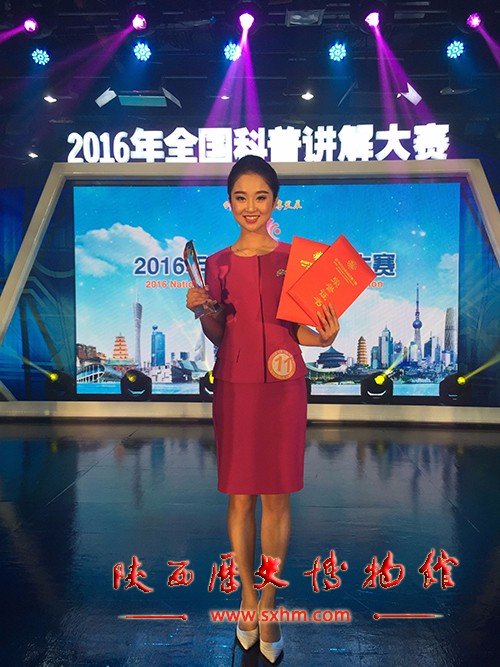 5月26至28日,全国科技活动周组委会在广州举办了以“创新引领 共享发展”为主题的“2016年全国科普讲解大赛”。陕西历史博物馆讲解员梁甜代表陕西省参加了此次比赛并荣获一等奖,同时被授予“全国十佳科普使者”称号。