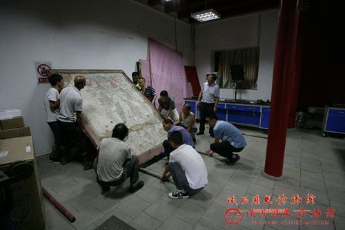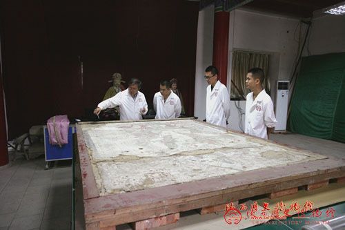 2018年7月30日,陕西历史博物馆壁画基地办公室主任杨文宗带领业务人员赴洋县智果寺正式开展智果寺壁画保护修复工作。经过半年的准备,智果寺壁画修复实验室的水电、照明、实验边台等基本设施以都已准备就绪,修复使用的材料工具也已就位。