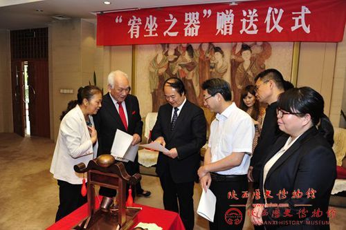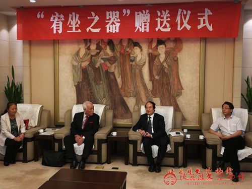 6月19日,日本现代名工针生清司一行到陕西历史博物馆参访,并向我馆和西安碑林博物馆赠送“宥坐之器”工艺品,馆党委书记、馆长强跃,碑林博物馆馆长裴建平等相关人员参加赠送仪式。